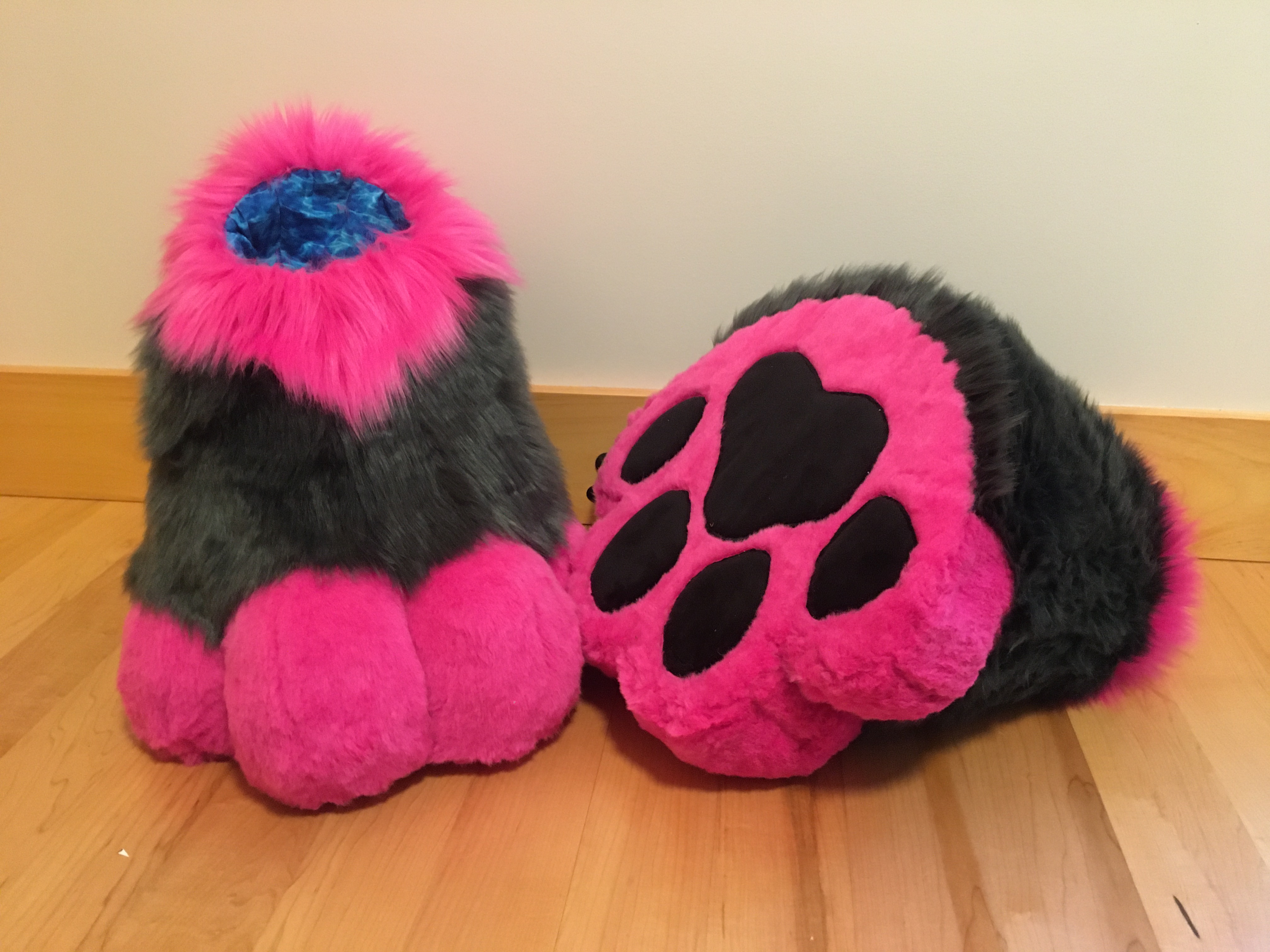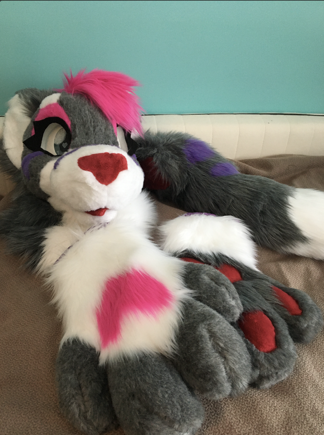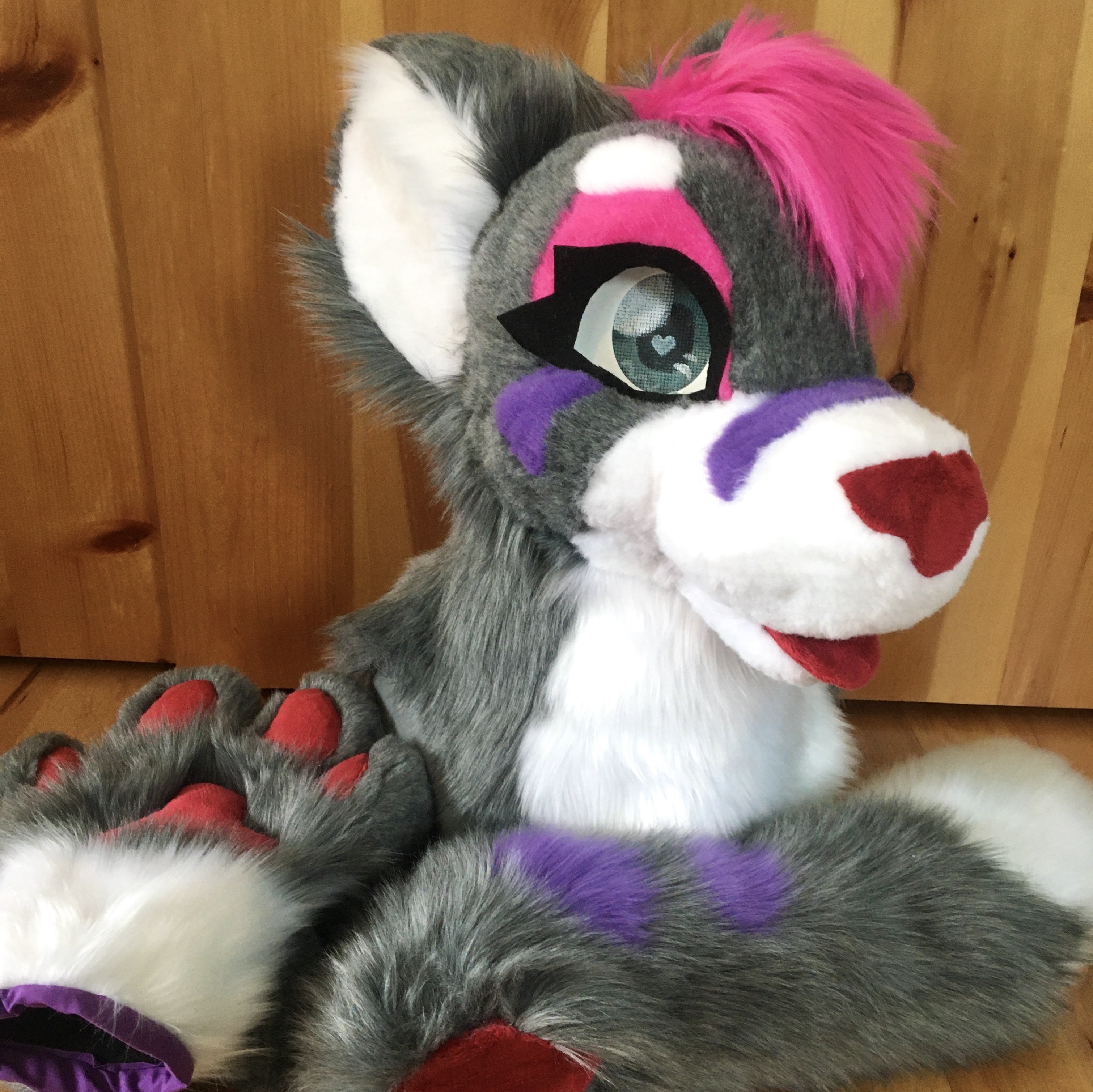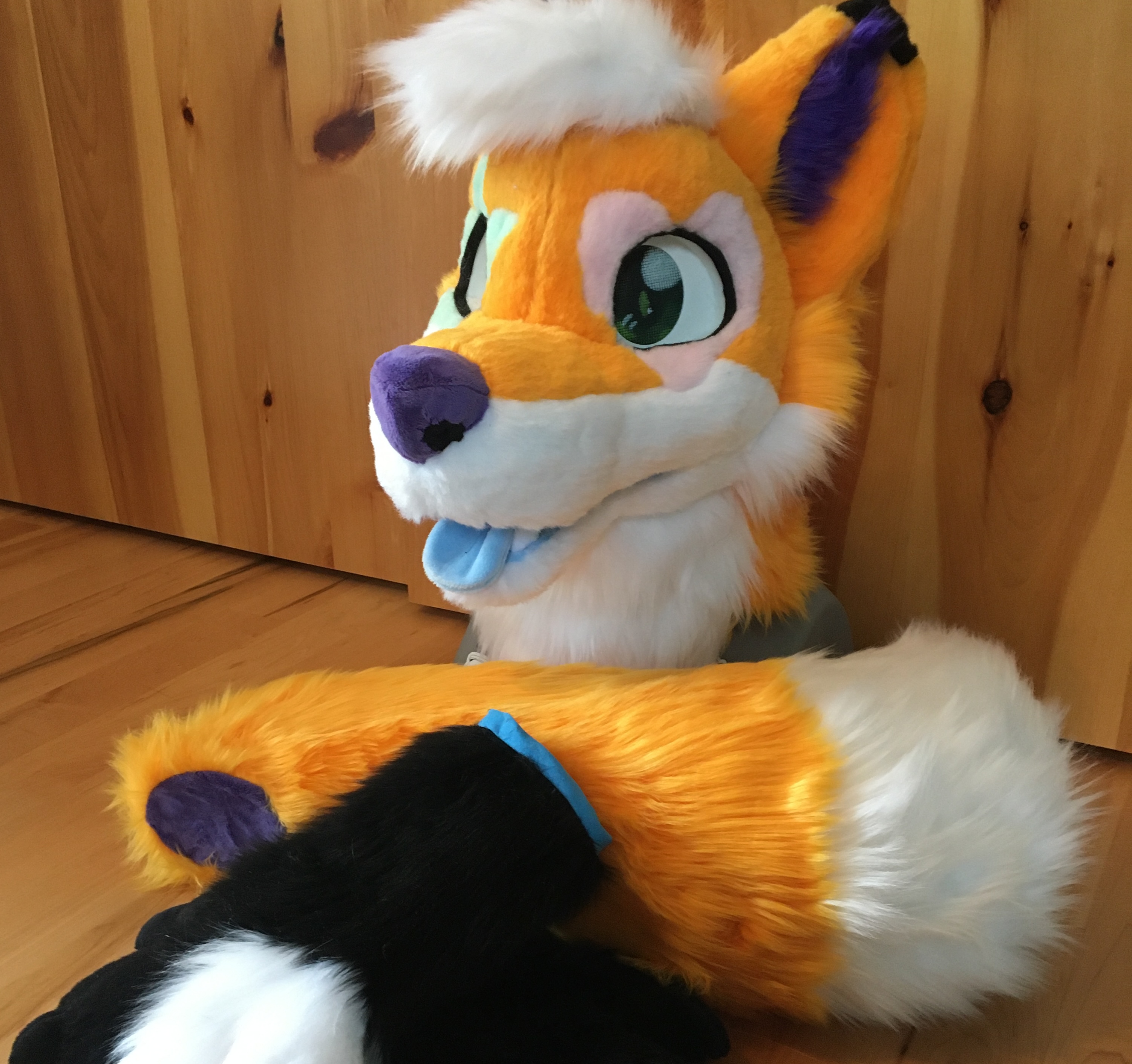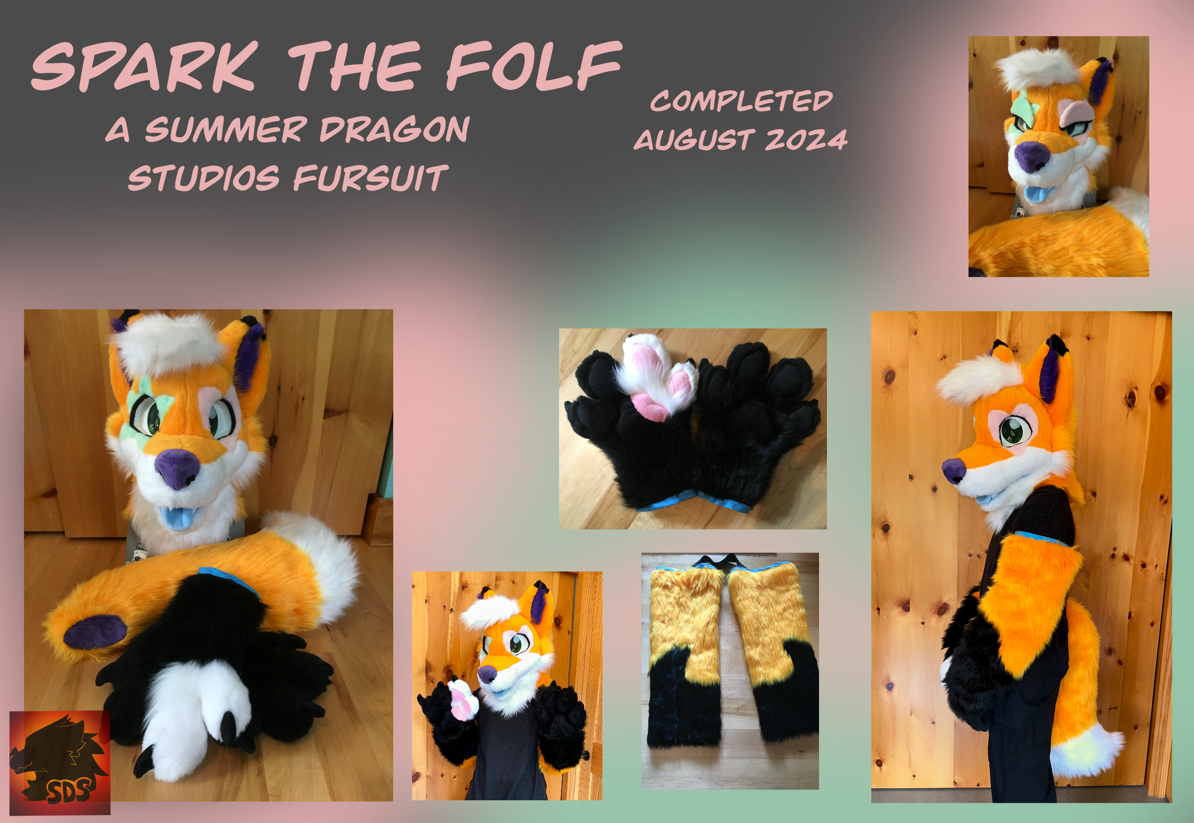This folf was one of three commissioned suits I made in the summer of 2024. They were a cute and simple design, with some fun eye markings and my first ever multicolored paw pads.