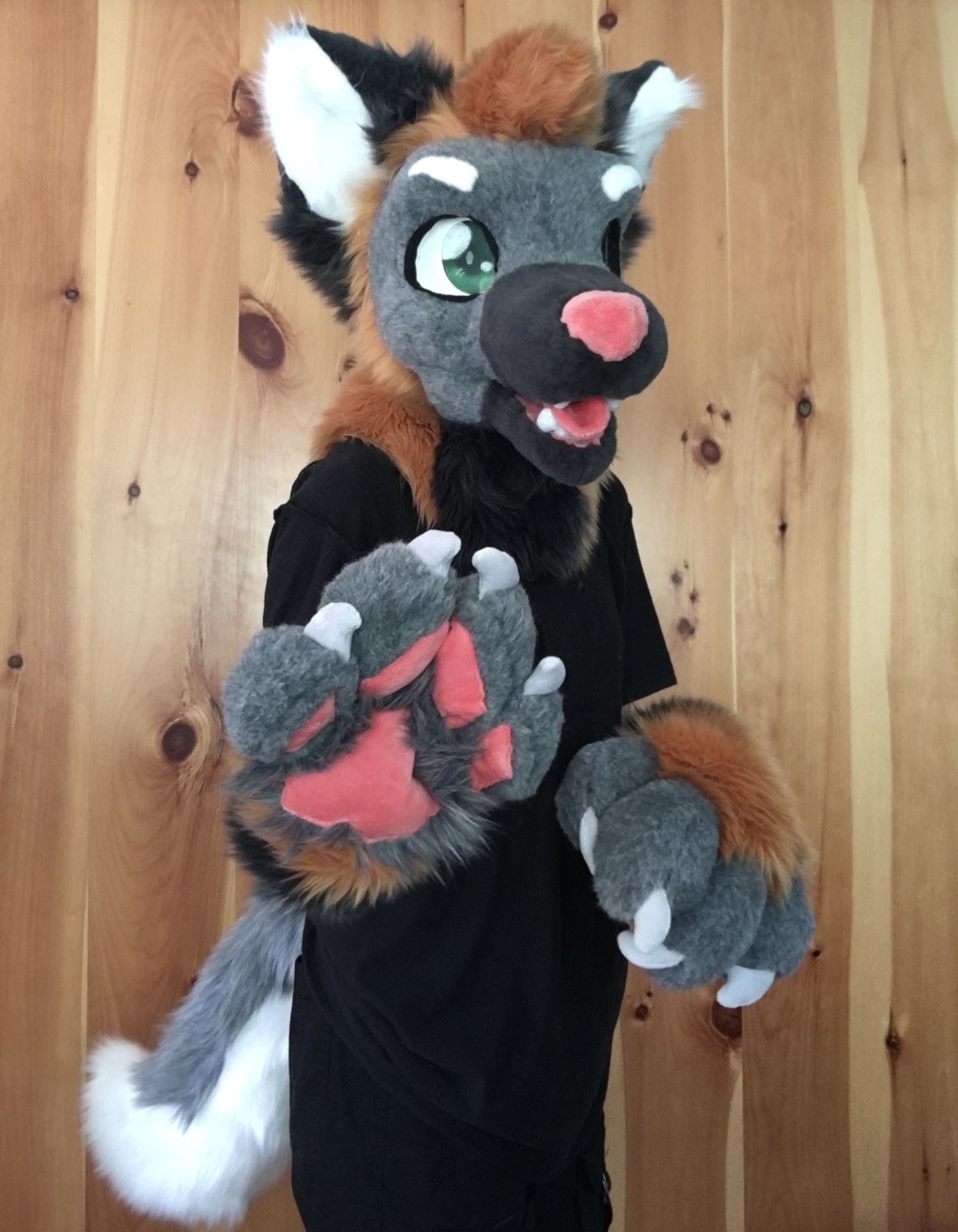 I've always loved the cross fox coloration, and decided to make it into a fursuit. This suit features my favorite marking for suits: the dark muzzle.