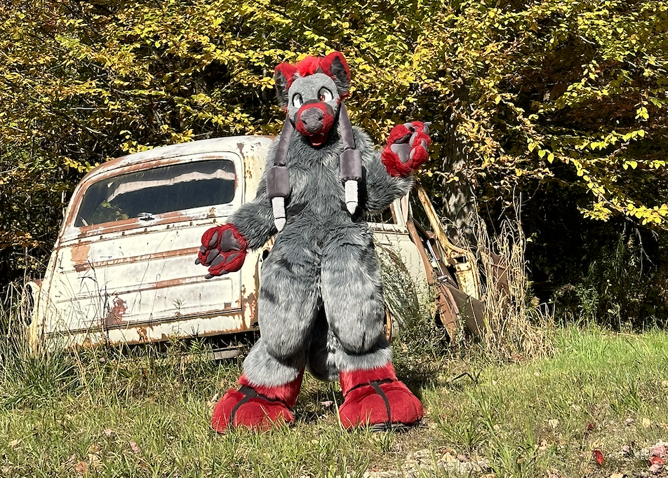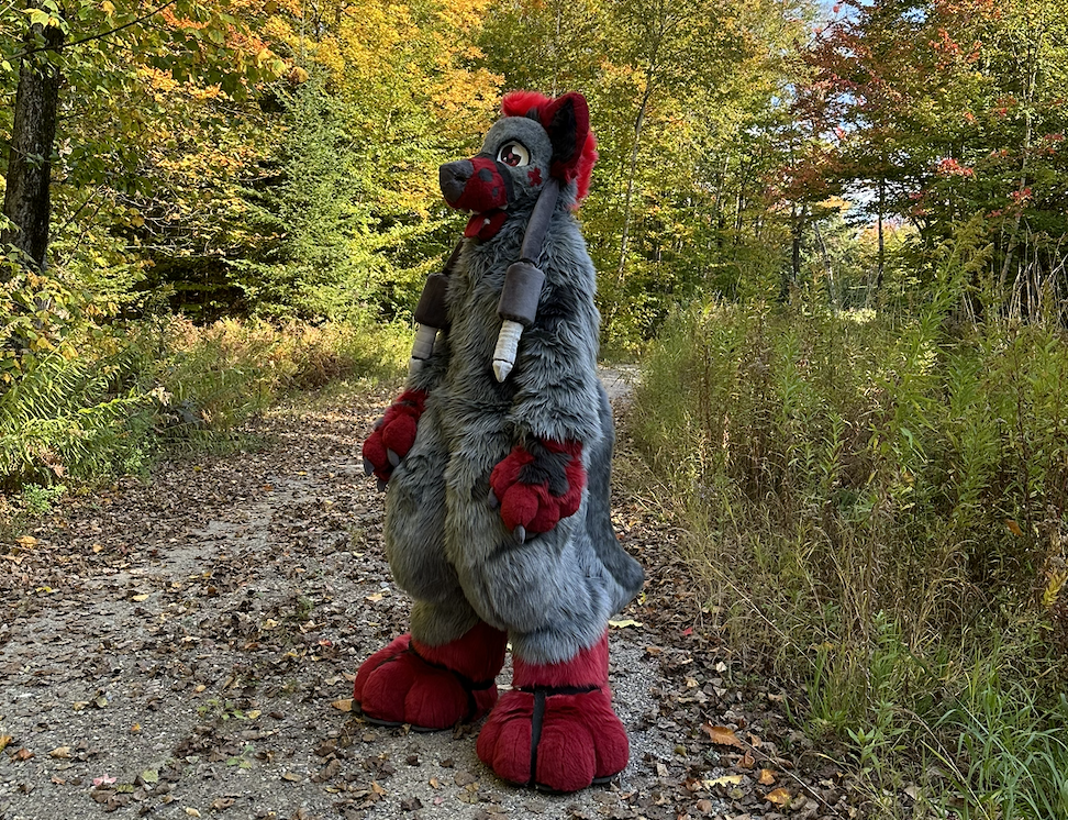 This grumpy fox was the spring premade for 2025. When making this suit, I got to try out a new style of small pickable nose that I haven't seen before.