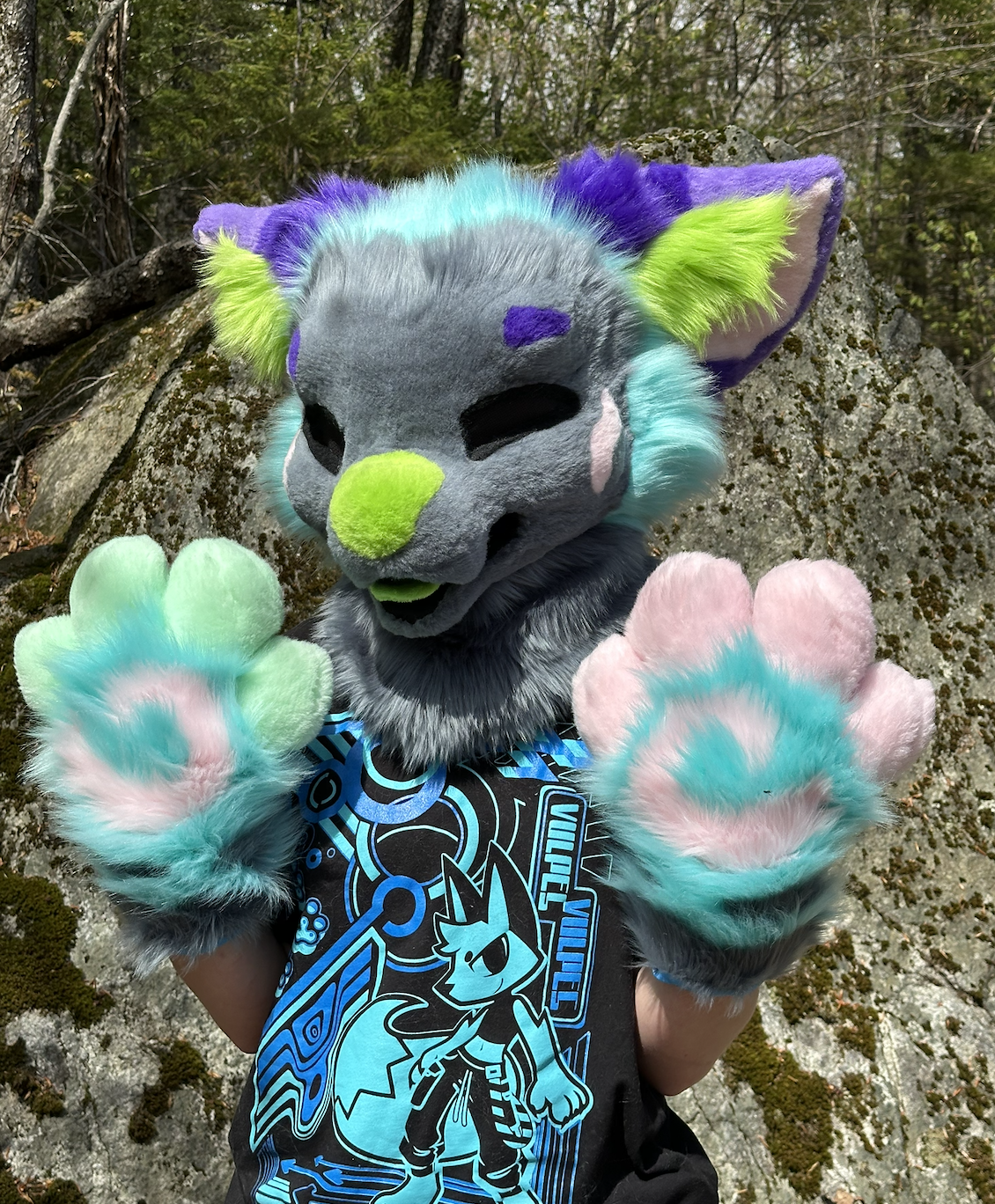 This was my first ever fursuit commission, an awesome Lynx. Their markings were really fun to make, and some of the fur even glows in the dark.